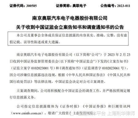 股民索赔预登记:奥联电子因涉嫌信息披露违法违规遭证监会立案